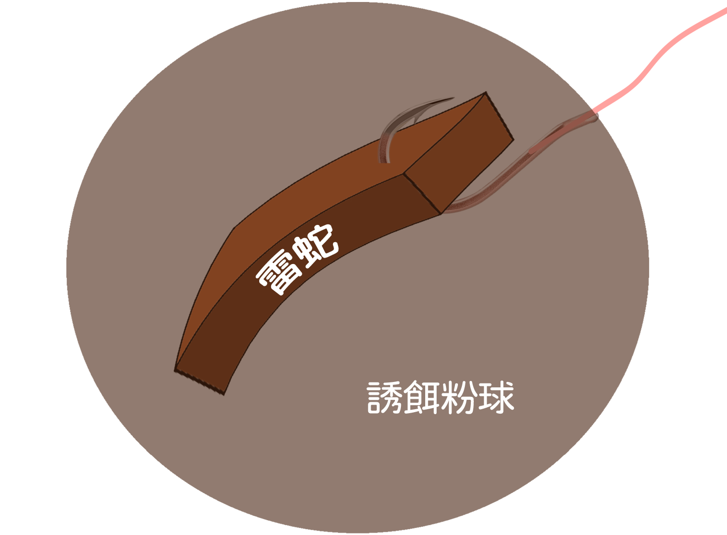 適用於魚排筏釣、磯釣、船筏及橋墩磯筏,使用長度約1-3厘米,自重1厘米約1.1克左右。在綁鈎時把魚絲結尾加長,然後於加長魚絲的末端綁一個結作定餌用(不需魚鈎),將加長魚絲拉入煉丸中,兩者有足夠重量快達泳層,帶餌時煉丸會脫落,雷蛇便乘流向流尾滑行,煉丸則停留於流頭散發味道,形成水底標點作聚魚之用。