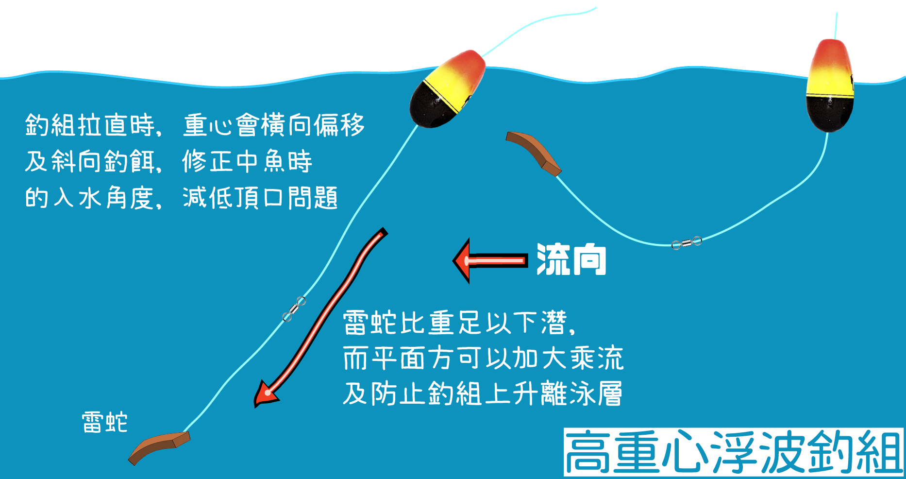 餌越長沉速越快,雷蛇律動越明顯,大魚視應性越佳