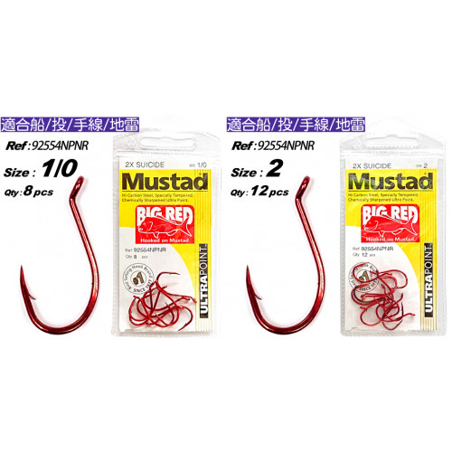 商品型號: Mustad BIG RED 92554NPNR 1/0 / 92554NPNR 2